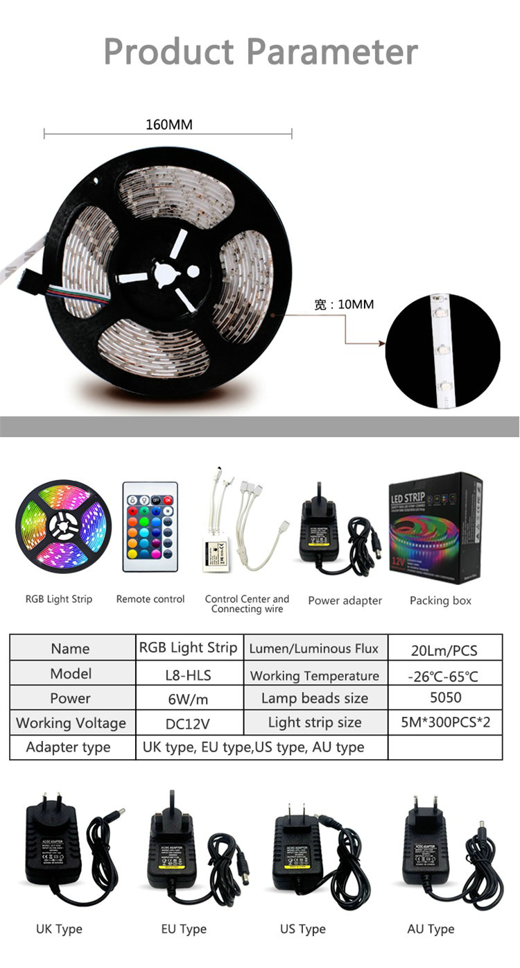 Light strip size:5M*300PCS*2